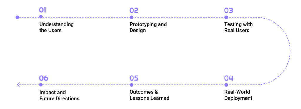 The RtD approach facilitated a cyclical process: each stage of development—problem identification, conceptualization, prototyping, testing, and reflection—generated insights that informed the next stage of the project. This method ensured that the design of Fritzi was deeply rooted in the real-world experiences of older adults.