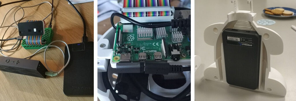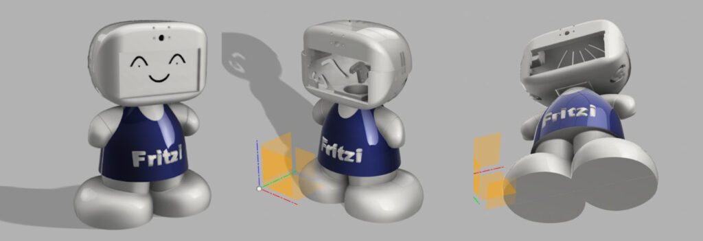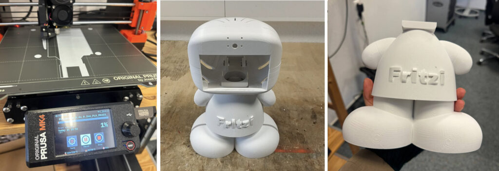 We used Fusion 360 to model the Fritzi, creating a design that was modular and easy to assemble, with a head inspired by human-like robots to create a friendly and approachable form. The 3D-printed shell housed the Raspberry Pi and speakers, ensuring the device was compact but robust enough for daily use.