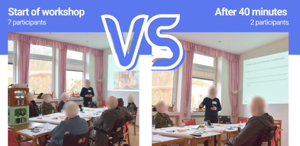 Despite the reduced engagement, we collected data through observation, note-taking, and audio-visual recordings. Due to the low participation, we couldn’t gather sufficient design feedback, such as wireframes or sketches, and decided to organize a follow-up focus group with a smaller, more targeted group to facilitate deeper discussions. This experience highlighted the need for flexibility in participatory design and the importance of precise participant selection.