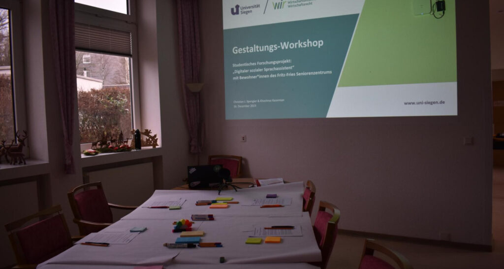 The workshop lasted 1.5 hours, covering an introduction to voice assistants, exploring real-world examples like ChatGPT, and discussing potential applications. We had seven participants initially, but five left halfway through, leaving only two engaged participants. This dropout was due to logistical issues, as the nursing home failed to ensure the presence of all interested residents, some of whom were absent due to illness.