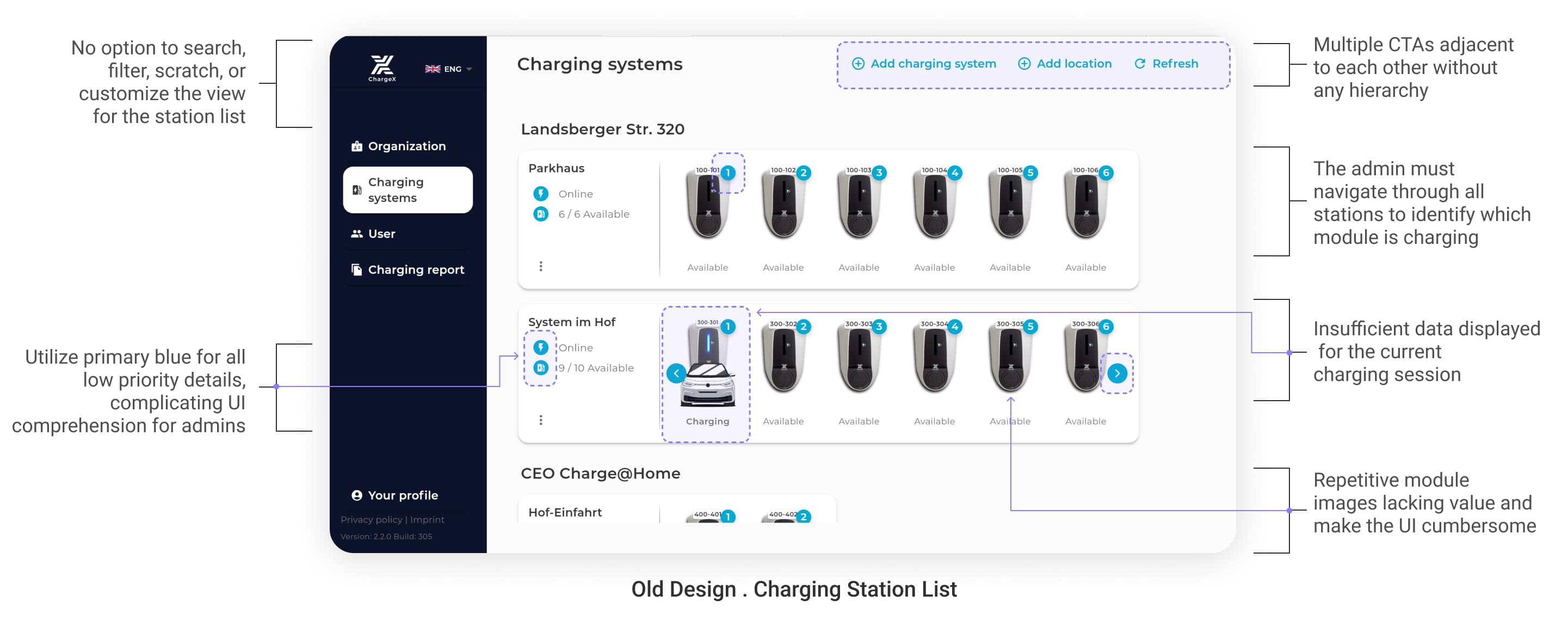 🔴 One of the loudest complaints I uncovered was that the old station list simply didn’t scale. With no search, no filters, and no clear session details, admins wasted time scrolling through endless lines just to figure out who was charging and what was happening.