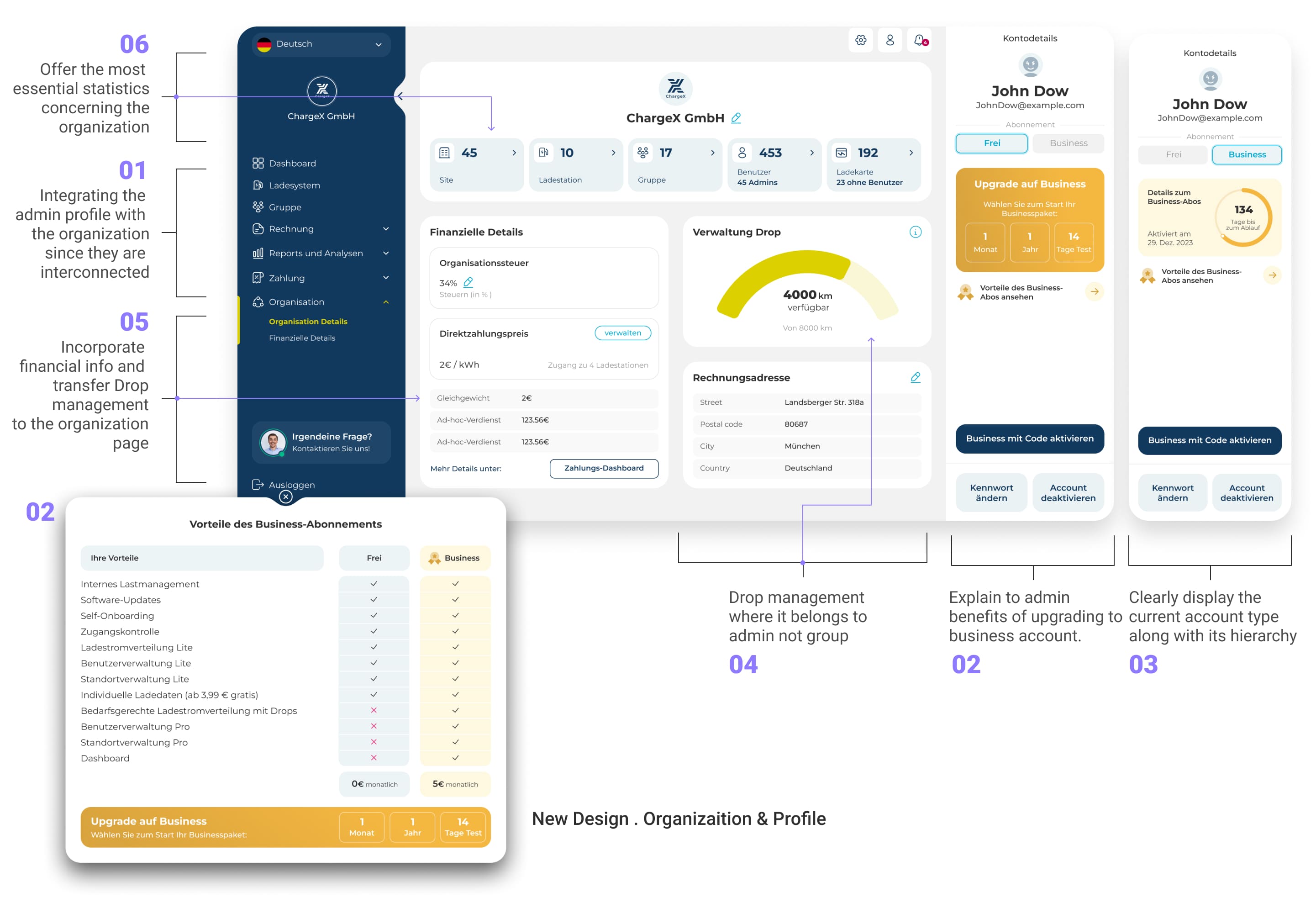 My solution was to merge profile and organization into one clear, intuitive hub. I designed it to surface what truly matters: clear account type and upgrade benefits, correctly placed Drop Management, financial insights powered by monthly billing, and key stats at the top for fast decision-making. By connecting the dots, I turned two confusing spaces into a single business-focused area that helps admins act with clarity instead of frustration.
