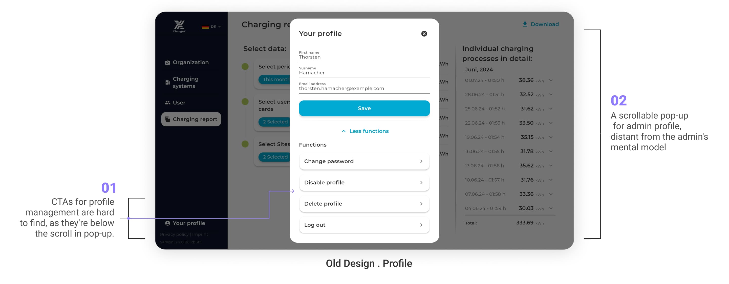 ChargeX is a German startup building modular, scalable EV charging solutions for fleets, residential buildings, and businesses. But as the customer base grew, the existing Admin Dashboard couldn’t keep up, it was rigid, outdated, and unable to serve the very different needs of admins. That’s where I came in. I led the end-to-end redesign and feature expansion of the dashboard: uncovering new customer groups, identifying key admin personas, and creating a scalable system built around real-world workflows.