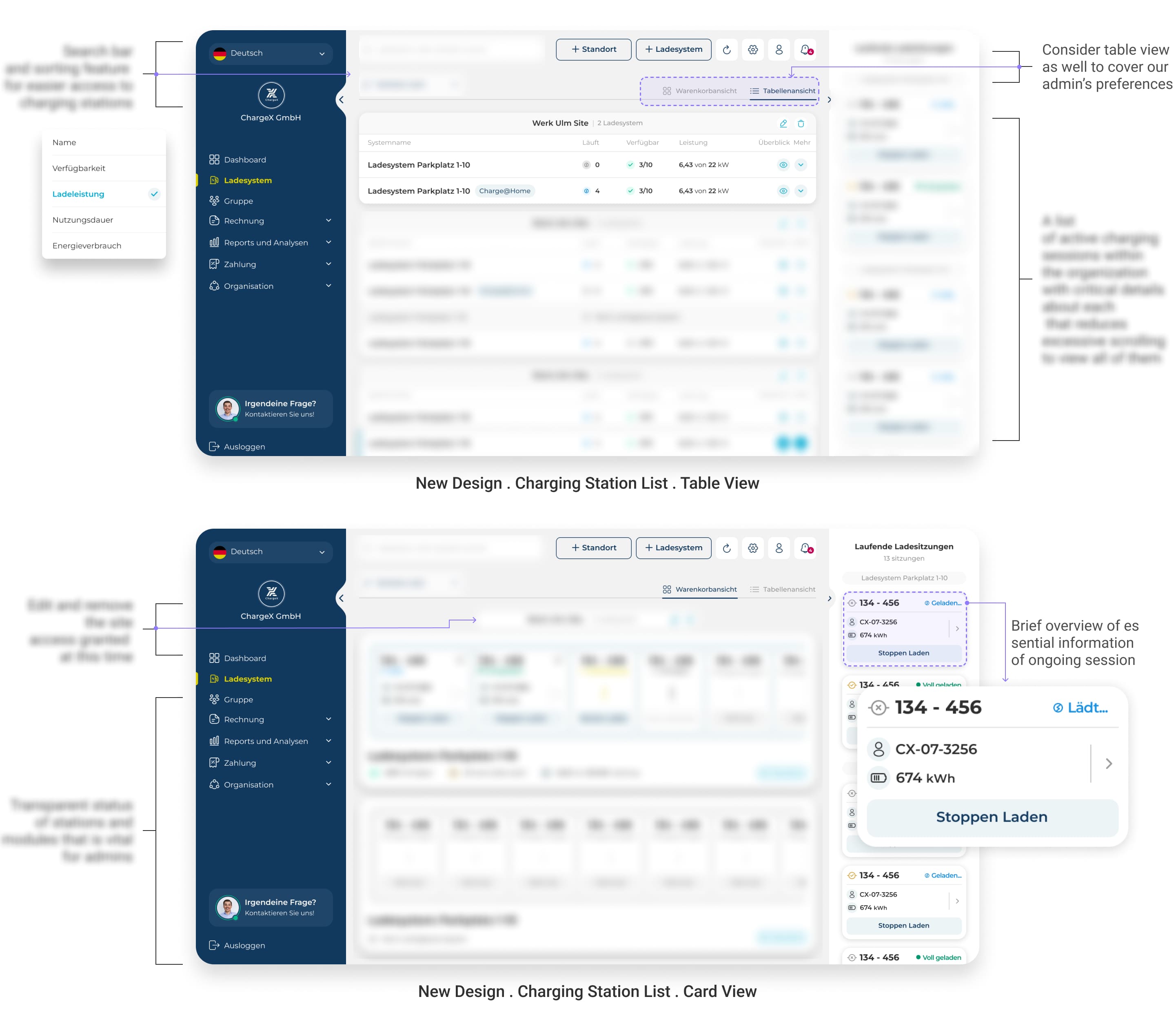 Instead of jumping straight into Figma and high-fidelity design, I wanted to validate my assumptions about how admins manage charging station lists. I had some ideas to make the lists scalable, easier to manage, and packed with the right data, but I needed quick feedback before investing weeks into design and dev.