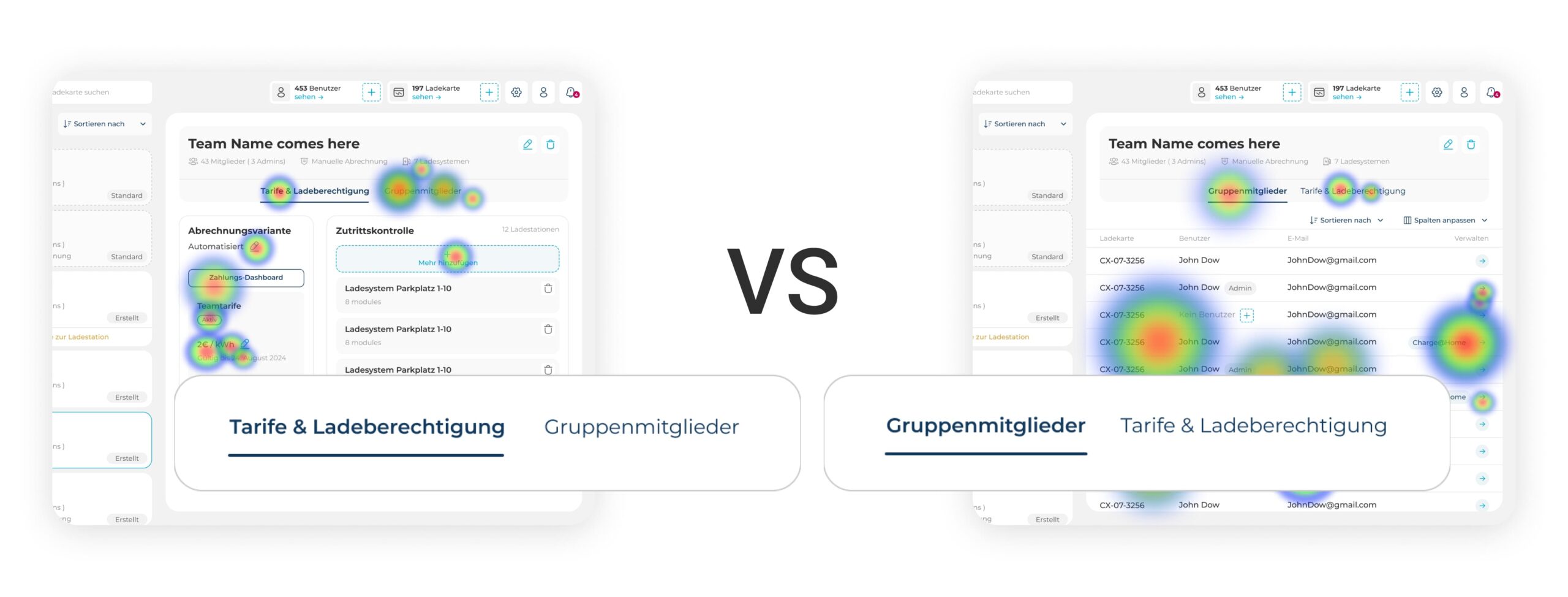 Heatmaps and click patterns revealed that admins consistently clicked into a team expecting to first manage members and cards, the tasks they handle daily. Billing, while important, was a less frequent action. With a clear label, admins overwhelmingly preferred it in the second tab, freeing the first tab for daily operational needs. This evidence helped me make a confident decision on the final layout.