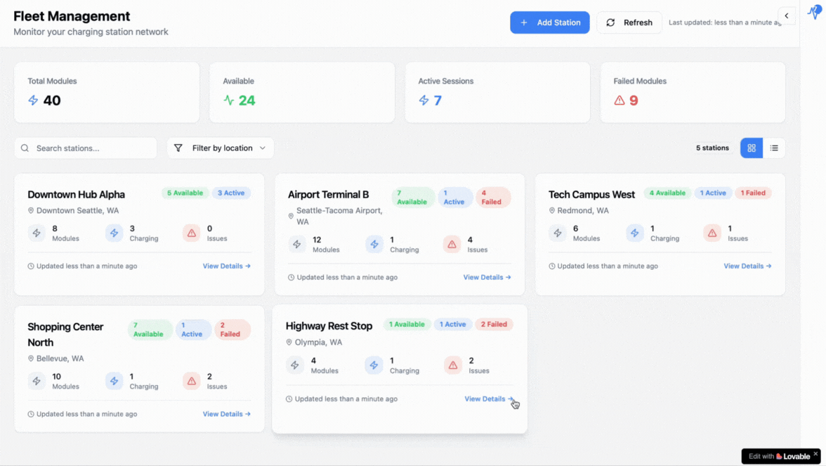 With color-coded station states, admins can now instantly spot what’s available, active, or down, no more guessing, no more digging.