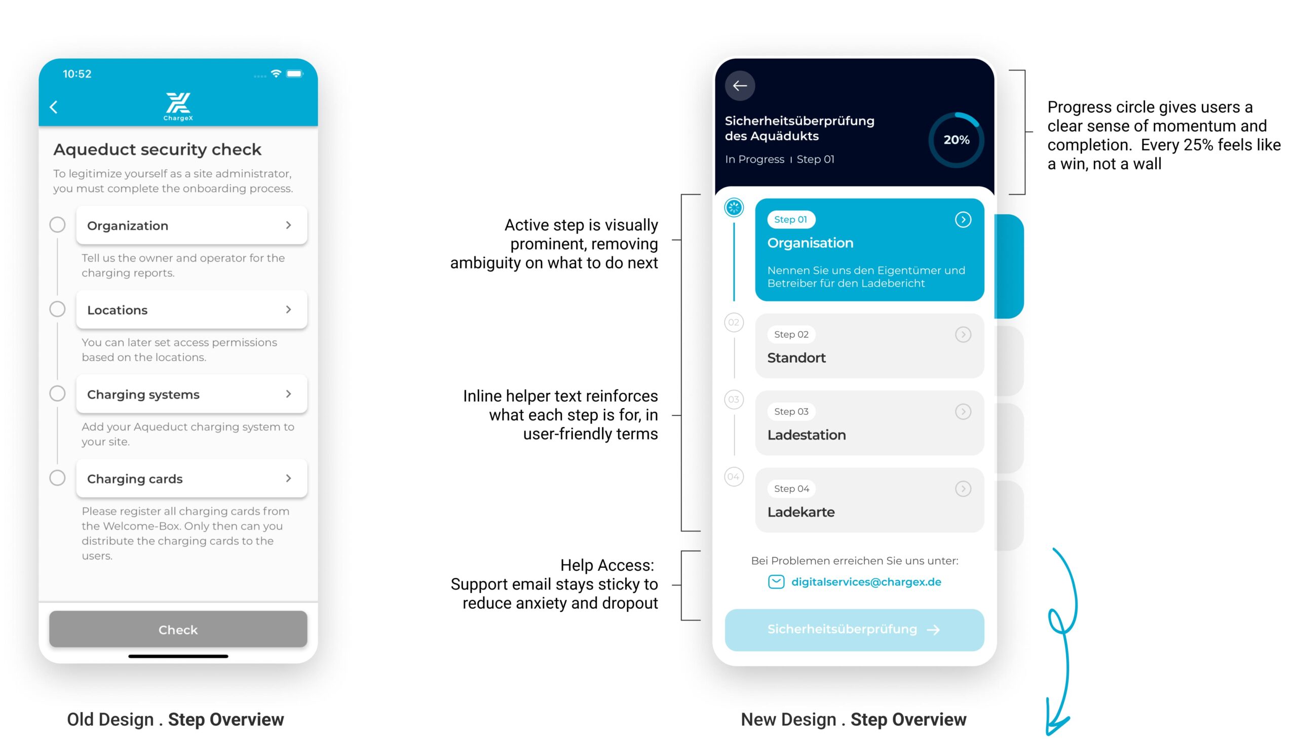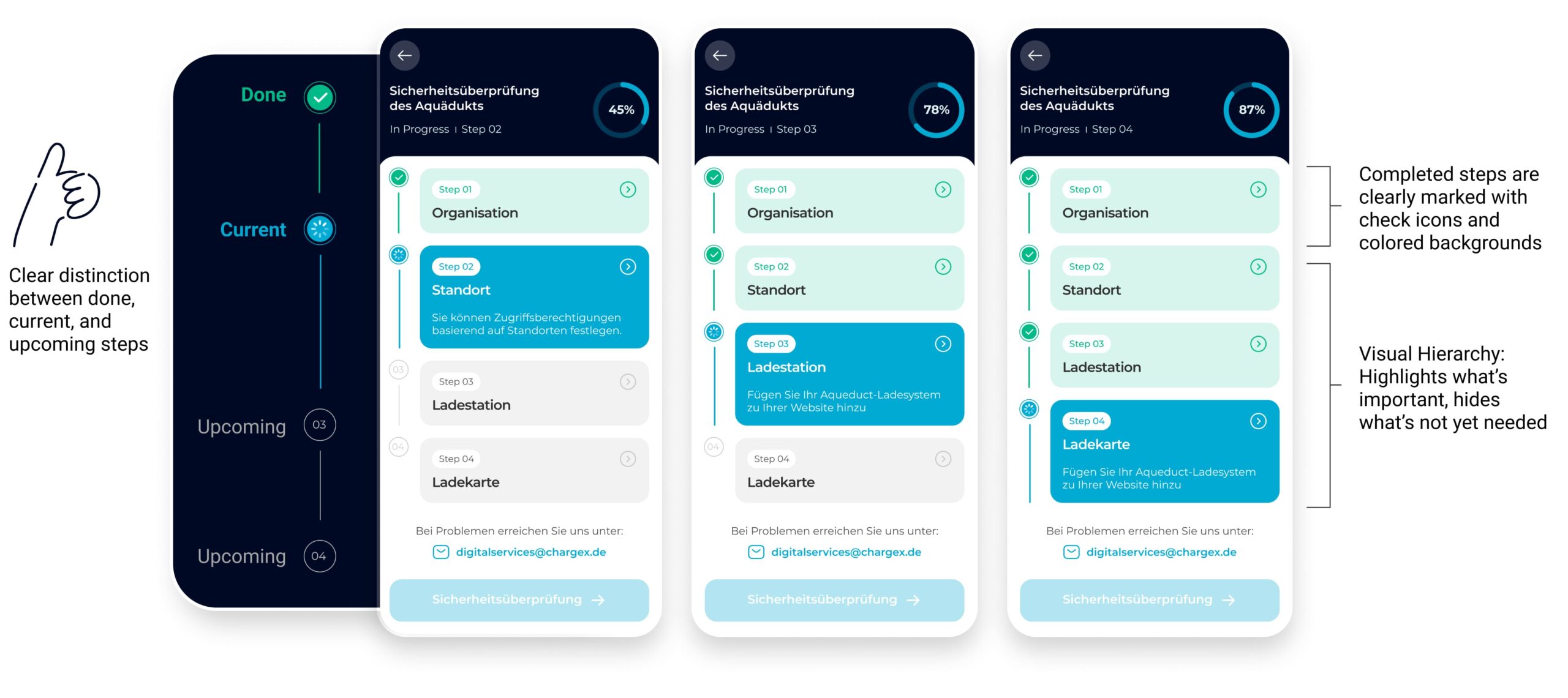Lean tests showed people missed step changes, so I turned the flat list into a guided journey