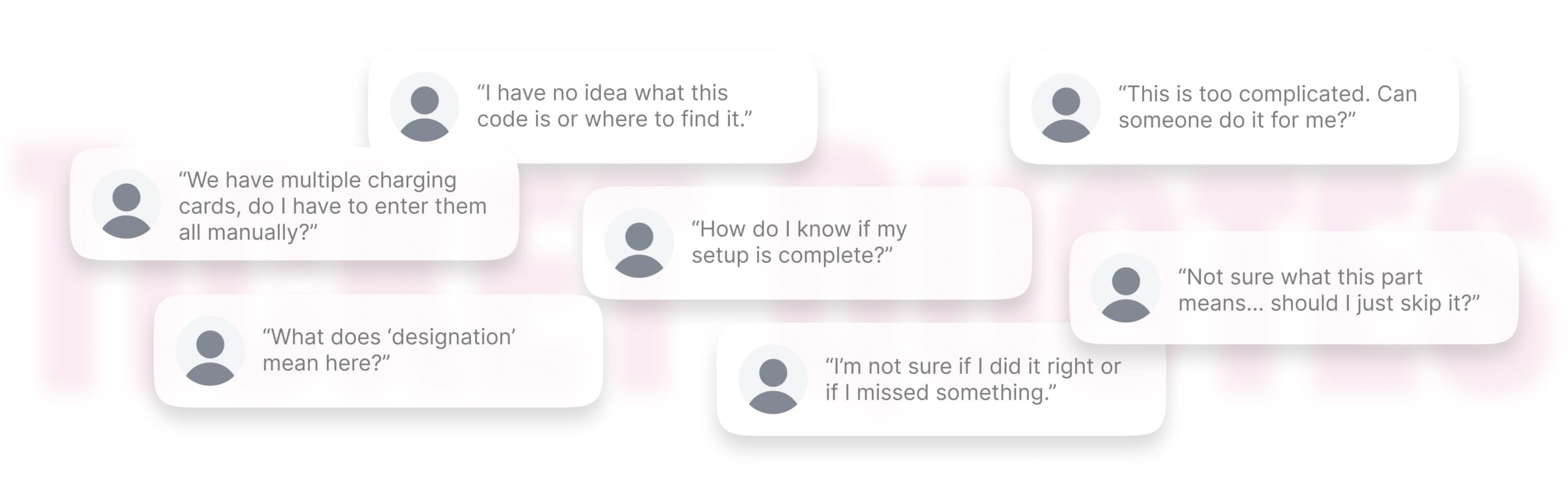 Before B2B admins could manage charging systems, they first had to verify themselves as site administrators. But many couldn’t complete the setup without calling support. Every week, our CS team was drowning in tickets — over 200 per month — from admins who were confused about terminology, unsure what to do next, or uncertain if they’d even completed onboarding.