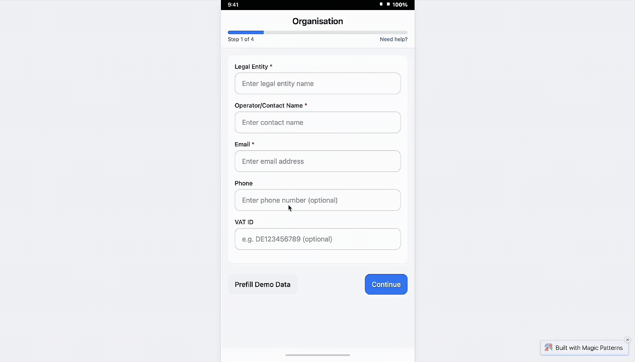 Then, I fed those prompts into Magic Patterns and “vibe-coded” a clickable, stateful prototype in seconds. Scan/manual branches, inline checks, progress, and saved state were all live, so I could put it in front of real admins immediately.