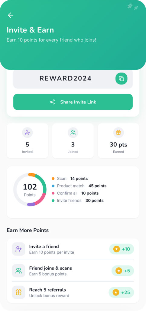 Immediate user value: Rewards turn each scan into a win. Users get something tangible in return instantly, without waiting for long-term insights or integrations that depend on retailer adoption.
