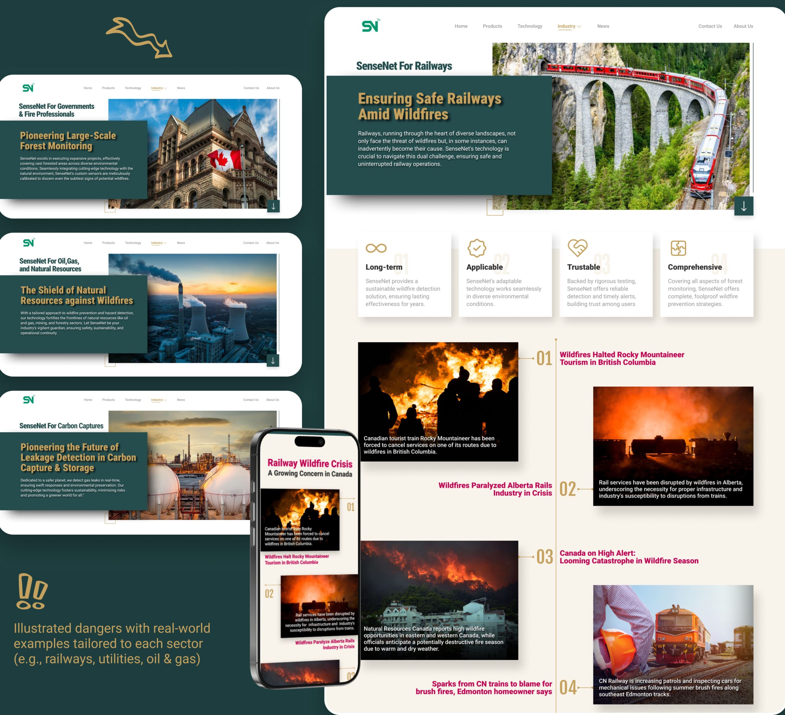 Created dedicated pages for each industry to address specific wildfire risks and pain points