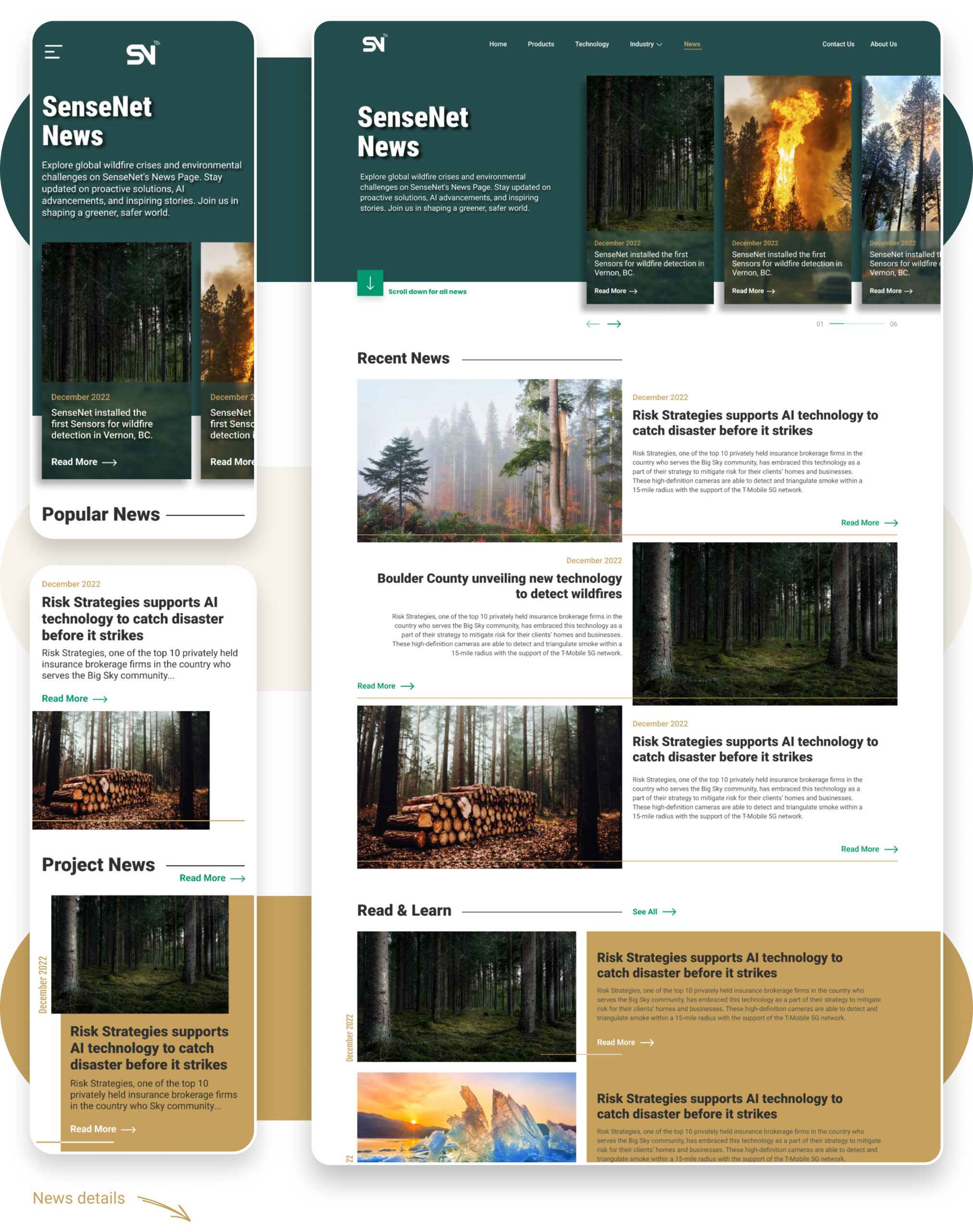SenseNet is a climate tech company providing AI-powered wildfire detection solutions for governments and emergency response teams. I designed their official website to clearly communicate the platform’s real-time monitoring and predictive analytics capabilities while elevating brand credibility. The result is a sharp, accessible, and trustworthy digital presence that effectively engages public-sector clients and decision-makers.