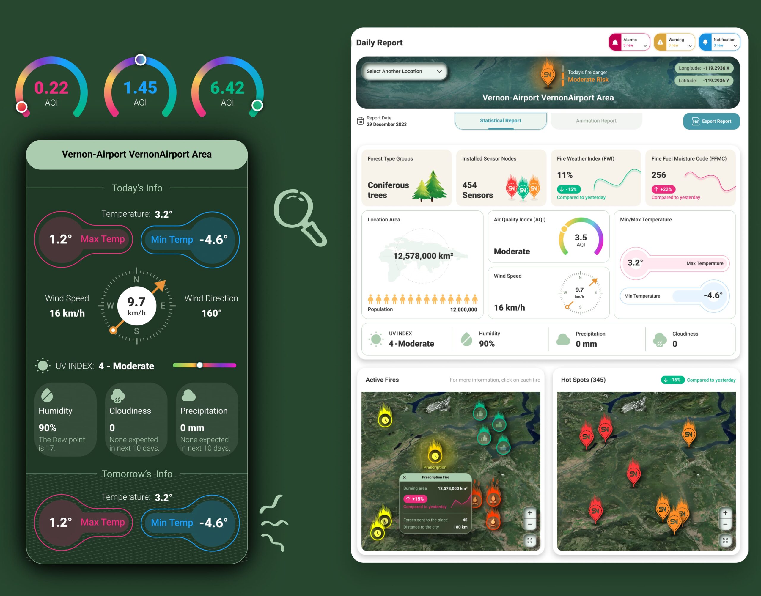 I led the end-to-end design of this complex, data-intensive dashboard, defining user flows, structuring key interfaces, and designing clear, responsive layouts for both desktop and mobile. I translated real-time wildfire data into intuitive visualizations and actionable views, iterating based on feedback to ensure usability, speed, and clarity under emergency conditions.
