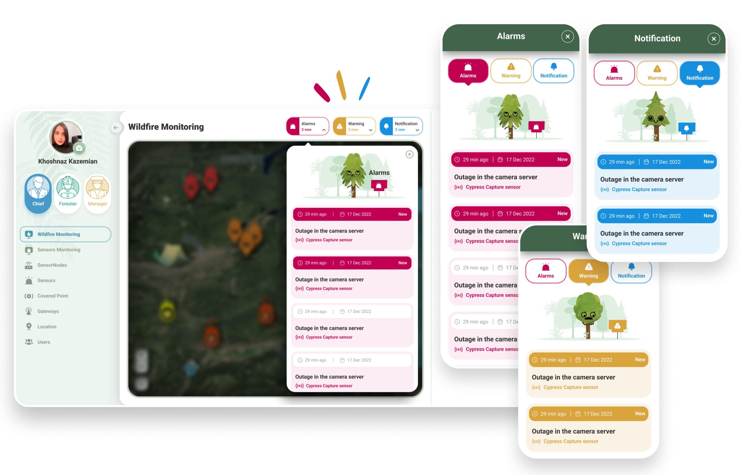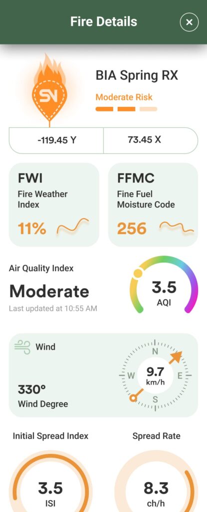 Mapped wildfire threats across forests, railways, and campsites with clear icons and alerts, enabling quick interpretation and faster decisions.